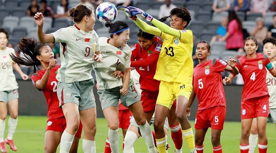 প্রথমার্ধের শেষ দুই মিনিটে ২ গোল হজমের পর আশঙ্কা করা হয়েছিল, বড় ব্যবধানের হারে এশিয়ান কাপে অভিষেক হতে পারে বাংলাদেশের মেয়েদের। তবে সেটা হয়নি। বাংলাদেশ লড়াই করেছে ৯ বারের চ্যাম্পিয়ন চীনের বিপক্ষে। দ্বিতীয়ার্ধে কোনো গোল করতে পারনি এই এই টুর্নামেন্টের সবচেয়ে বড় ফেবারিট চীন। বাংলাদেশের মেয়েদের এশিয়ান কাপে অভিষেক হয়েছে ২-০ গোলের হারে। অস্ট্রেলিয়ার সিডনির ওয়েস্টার্ন স্টেডিয়ামে এশিয়ান কাপ খেলতে নেমে নারী ফুটবলে নতুন ইতিহাস রচিত হয়েছে বাংলাদেশের। প্রতিপক্ষ চীনের বিপক্ষে বাংলাদেশের মেয়েরা লড়াই করে হেরেছে। এশিয়ান সেরা মঞ্চে বাংলাদেশের মেয়েরা অভিষেক ম্যাচে হারলেও সবার মন জয় করেছে। এ ম্যাচে বাংলাদেশ গোলও করতে পারতো। প্রথমার্ধে ঋতুপর্ণার একটি শট ক্রসবার উঁচিয়ে বাইরে গেছে। তবে শেষ দুই মিনিটে বাংলাদেশের রক্ষণ ভেঙে চীনের মেয়েরা দুটি গোল আদায় করে নেয় এবং ওই গোল ধরে রেখে জয় দিয়ে মিশন শুরু করে বর্তমান চ্যাম্পিয়নরা। ২৪ মিনিটে চীনের ওয়াং শুয়াং বাংলাদেশের জালে বল পাঠালেও অফসাইডের কারণে গোল বাতিল হয়। তখন মনে হয়েছিল বাংলাদেশ হয়তো প্রথমার্ধে শক্তিশালী চীনকে আটকে রাখতে পারবে। তবে প্রথমার্ধের শেষ দুই মিনিটে দুই গোল খেয়ে বাংলাদেশ পিছিয়ে গেছে। ৪৪ মিনিটে সেই ওয়াং শুয়াং বক্সের বাইরে থেকে শট করে গোল করে। ইনজুরি সময়ে দ্বিতীয় গোল করেছেন ঝাং রুই। বিরতির বাঁশির ঠিক আহে ঝাং রুইয়ের শট ক্রসবারের ওপর দিয়ে না গেলে ব্যবধান বাড়িয়েই বিরতিতে যেতে পারতো চীনের মেয়েরা। দ্বিতীয়ার্ধে বাংলাদেশের খেলা ছিল নিখুঁত। চীনের মতো দলকে আটকে রাখতে যেভাবে ডিফেন্স করার সেভাবেই করেছেন আফঈদা, শামসুন্নাহাররা। আক্রমণভাগের গতি একটু বেড়েছিল তহুরা খাতুন মাঠে নামার পর। তবে গোলের সুযোগ সেভাবে বাংলাদেশ তৈরি করতে পারেনি। এ ম্যাচে অভিষেক হয়েছে সুইডেন প্রবাসী অনিকা রানিয়া সিদ্দিকীর। মাৎসুশিমা সুমাইয়ার পর আনিকা হলেন দ্বিতীয় প্রবাসী ফুটবলার যার অভিষেক হলো বাংলাদেশের লাল-সবুজ জার্সিতে।