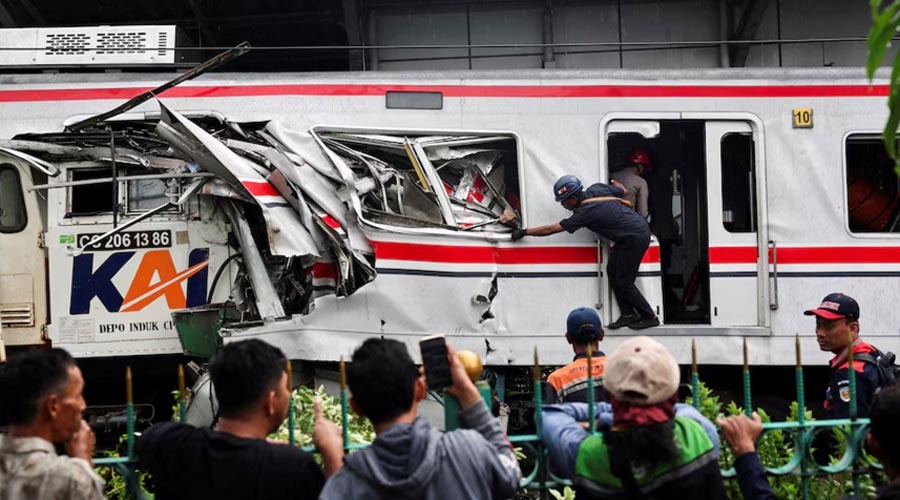 ইন্দোনেশিয়ার রাজধানী জাকার্তার উপকণ্ঠে ভয়াবহ ট্রেন সংঘর্ষে অন্তত ১৪ জন নিহত হয়েছেন। আহত হয়েছেন আরও ৮৪ জন। সোমবার (২৭ এপ্রিল) রাতে বেকাসি শহরের একটি রেলস্টেশনের কাছে একটি কমিউটার ট্রেন ও একটি দূরপাল্লার ট্রেনের মধ্যে এই সংঘর্ষ ঘটে। উদ্ধার অভিযান শেষে মঙ্গলবার (২৮ এপ্রিল) সকালে হতাহতের সর্বশেষ তথ্য নিশ্চিত করে রেল কর্তৃপক্ষ।