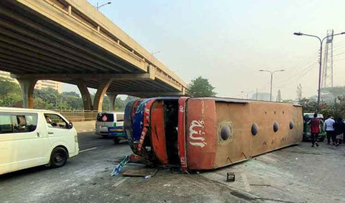 রাজধানীর বনানীতে পরিস্থান পরিবহনের একটি বাস নিয়ন্ত্রণ হারিয়ে উল্টে যাওয়ার ঘটনা ঘটেছে। এ ঘটনায় বাসটিতে থাকা ৪২ জন পোশাকশ্রমিক আহত হয়েছেন, যাদের মধ্যে বেশ কয়েকজন গুরুতর অবস্থায় রয়েছেন।