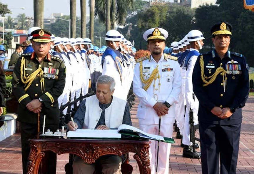 প্রধান উপদেষ্টা অধ্যাপক মুহাম্মদ ইউনূস সশস্ত্র বাহিনী দিবস উপলক্ষে ১৯৭১ সালের মুক্তিযুদ্ধে জীবন উৎসর্গকারী সকল বীর শহিদের প্রতি গভীর শ্রদ্ধা নিবেদন করেছেন।